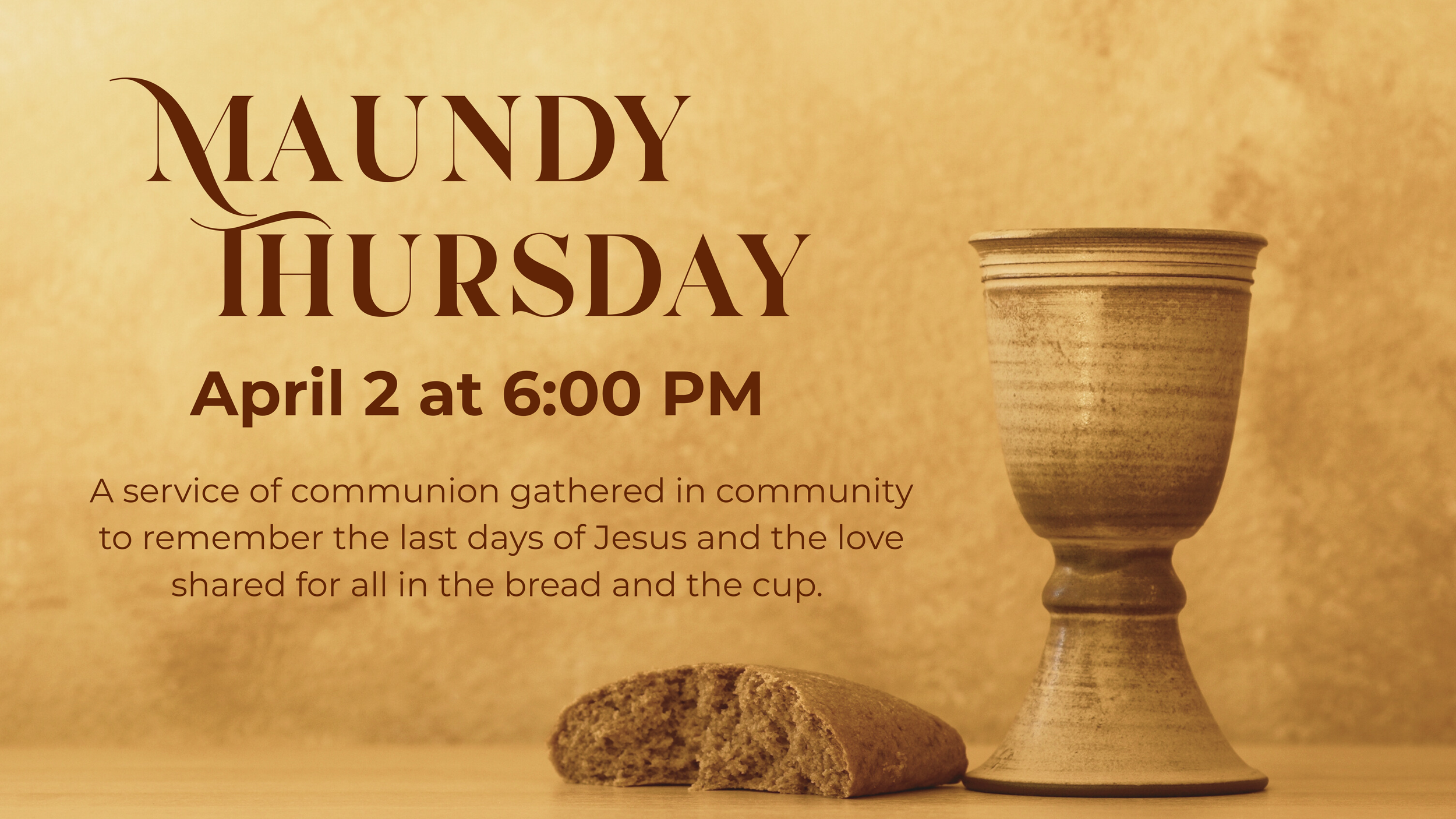 A service of communion gathered in community to remember the last days of Jesus and the love shared for all in the bread and the cup.